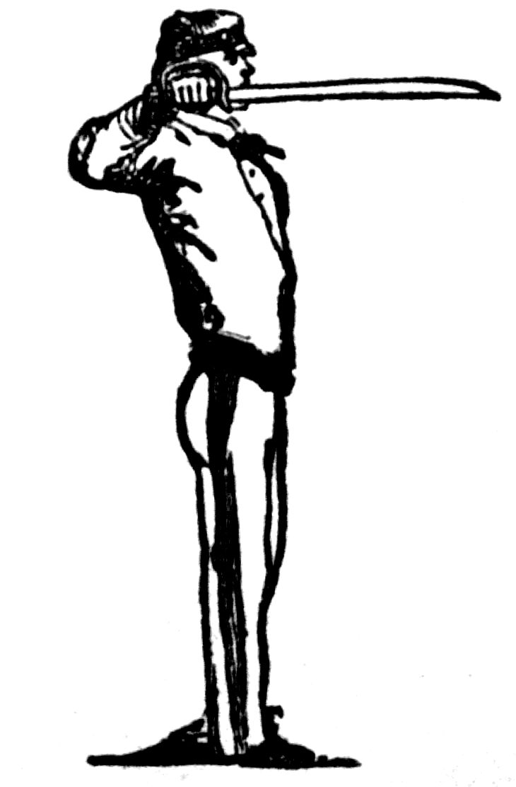 These movements must be frequently practiced before any others are attempted—the Guard, the Advance, the Retreat, the Longe, and the Recover; and when the learner has attained some proficiency in them, he may begin the more delicate movements of attack and defense. Of these I will now speak.