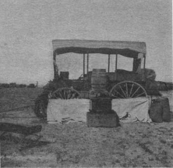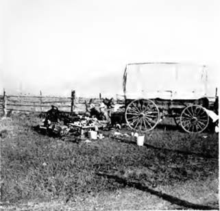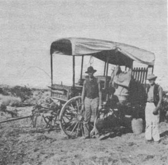 The foreman told us we could not drive on the track any farther as we were cutting up the ties and the oil which held the sand down. We told him that suited us; we wanted to be boarded until he could get a car and haul us out, and that we were about out of horse feed. He admitted that we could not pull through the sand and if we could not drive on the track we would have to stay there, but, as the railroad was not open for regular business and he had no facilities for feeding us, he changed the subject by asking us if we had got what water we wanted. When we told him we had, he said, “Why don’t you fellows go on then?” which we promptly did, after thanking him for the water.