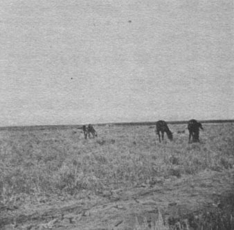 Here we turned our horses loose for the first time, thinking they were too tired and hungry to leave the bunch grass, and we were right. They didn’t leave that grass, and when it came time to turn in I just hobbled Dixie to be on the safe side. After this we hardly ever tied up our horses unless we were near a town or in a stock country where they might be enticed away by other horses, but before our trip was over even this was unnecessary, as we found they could not be driven very far away from the wagon. In fact, any horse we were not using would follow the wagon like a dog.
