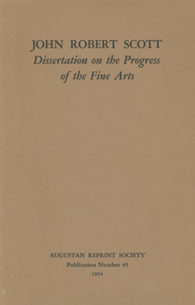 Scott's "Dissertation on the Progress of the Fine Arts" embodies what we can now see as a final development in his century's deep concern to understand why what it so often admitted was the greatest art had somehow not been forthcoming in what it as often claimed was the greatest century. The "Dissertation" is in no way an original work; rather—and this is its primary value for us—its author takes a belief which his culture has given him and, like others before him, tries to clarify one of its implications. The belief is in the idea of a universal progress marred, if it in the end can be said to be marred, only by an esthetic primitivism; the implication is that that esthetic primitivism can be not only comprehended but surmounted. Scott accepts the century's commonplace that art of power and significance has been necessarily produced only in societies markedly simpler than his own; and he accepts too the fact (for such it was when men believed in it and judged according to the principles generated by it) that in all forms of culture excepting art, his own richly complex society has produced something far surpassing anything produced in the "simpler" society of classical Greece or of the Italian Renaissance. Scott's uniqueness is that, unlike those of his predecessors who had worked with the same belief, he does not try to establish an historical rationale for this status quo. He goes so far as to envisage—perhaps it would be truer to his state of mind to say posit—an enlightened modern society which will at once remain what it is and yet so change itself as to make possible the production of major art.