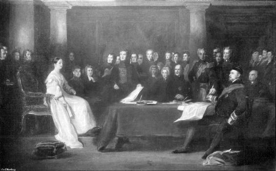 Next, the Prime Minister, Lord Melbourne, was summoned, and Charles Greville has described in his diary how the young Queen met the Privy Council at eleven o’clock.