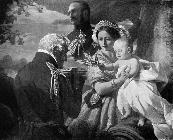 Queen Victoria’s accession was the cause of the departure from England of a Prince deservedly unpopular, whose signature stands first among those appended to the Act of Allegiance executed at Kensington Palace. |Severance of the Crown of Great Britain and Hanover.| Hitherto, for more than one hundred and twenty years, succession to the throne of Great Britain had carried with it the crown of Hanover; but, inasmuch as that crown was limited to the male line, it passed, on the death of King William, to his eldest surviving brother, the Duke of Cumberland. It is not necessary to discuss here the character of that Prince—it is enough to say that his departure to take up his inheritance in Hanover was probably cause of regret to very few persons in this country and reason for rejoicing to a great many. Nor, in looking back over the history of the past sixty years, can any thoughtful person fail to recognise advantage in the severance of the monarchies of Great Britain and Hanover. Any loss of prestige or dignity which might have been anticipated has been amply outweighed by the freedom enjoyed by this country from continental complications. England, while she has forfeited no weight in the Councils of Europe, is in a far stronger position to enforce her will when necessary, and the development of rapid and easy transit have protected Englishmen from any disadvantage that might have been apprehended from an exclusively insular Court.