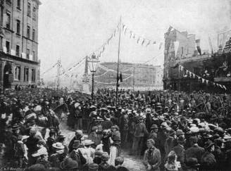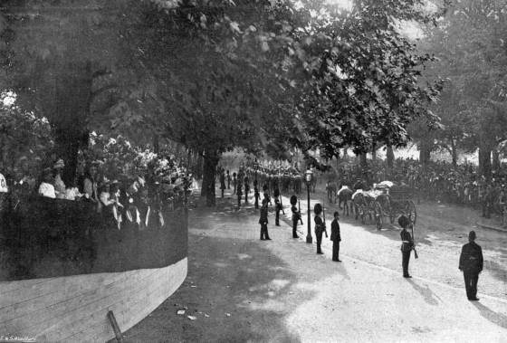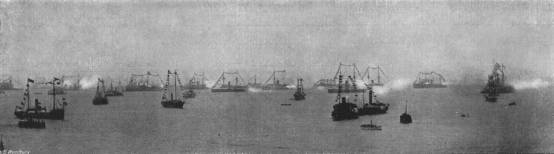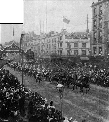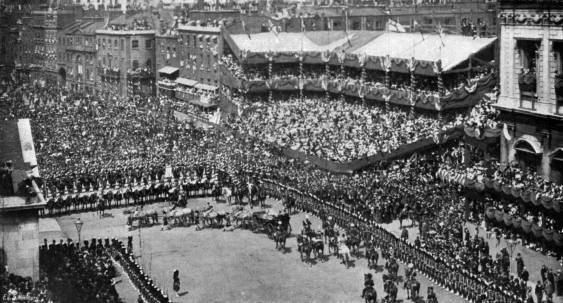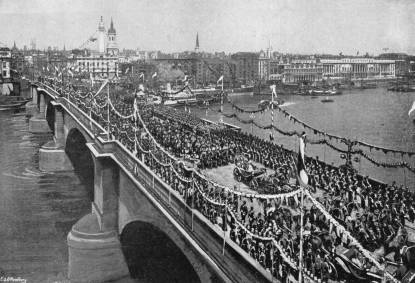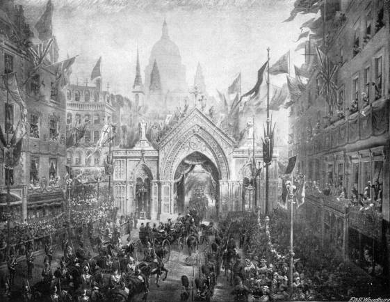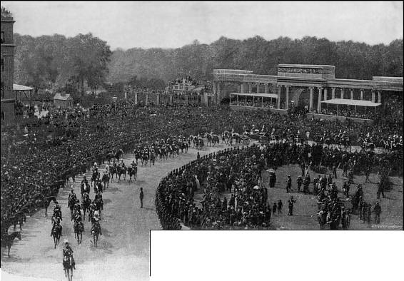 Illuminations in London—Festivities in the Provinces and the Colonies—Addresses of Congratulation from the Lords and Commons—Gathering of School Children on Constitution Hill—State Performance at the Opera—The Princess of Wales’s Dinners to the Poor—State Reception—Special Performance at the Lyceum—Torchlight Evolutions by Etonians at Windsor—Naval Review at Spithead—The Fleet Illuminated—The Colonial Troops at the Naval Review.