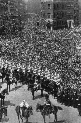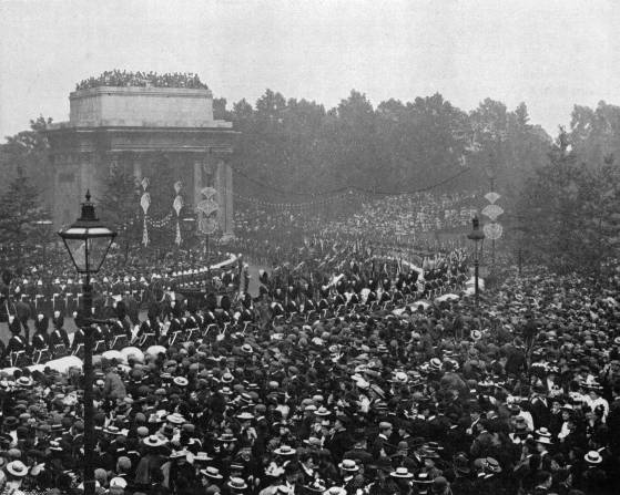 The Central Idea of the Celebrations—The Imperial Character of the Pageant—The Colonial Premiers Invited—The Decorations—Influx of Visitors—Grand Stands—Precautions against Accidents—Thanksgiving Services on Accession Day—The Queen’s Arrival in London—Night in the Streets.