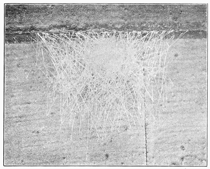 Fig. 471. Webs of Dictyna on the side of a house. The nests were in the groove