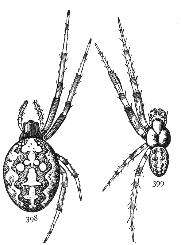 Page 171. Figs. 401, 401 a. Epeira thaddeus, enlarged four times.