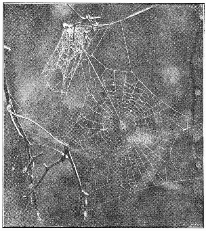 Fig. 495. Horizontal web of Uloborus near the ground, one side attached to a fallen