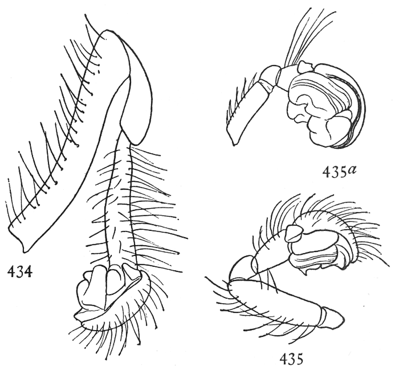 Page 187. Figs. 434, 435, 435a. Male palpi of Zilla.—434, Zilla atrica. 435, Zilla x-notata. 435a, Zilla montana.