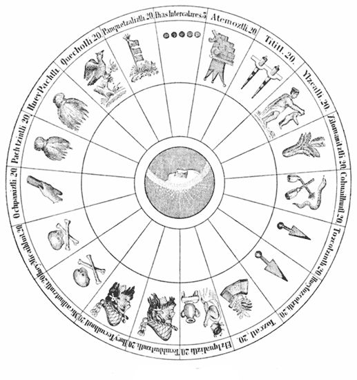 Astronomical Knowledge of the Aztecs—Contradictions of Authors respecting the Calendar—Value of the Researches of Various Writers—The First Regular Calendar—The Mexican Cycle—The Civil Year—The Aztec Months—Names of the Days and their Signification—The Commencement of the Aztec Year—The Ritual Calendar—Gama's Arrangement of the Months—The Calendar-Stone—The Four Destructions of the World—The Calendar of Michoacan—Reckoning of the Zapotecs502