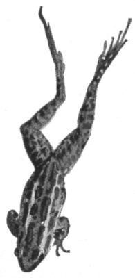 However, the toad to the most of us is anything but a poem. What, indeed, looks less lovely, less nimble and buoyant, more chained to the earth, than a toad? But stretch the least web between his toes, lengthen his hind legs, and—over he goes, the leopard-frog, champion high diver of the marsh! Or, instead of the web, tip his toes with the tiniest disks, and—there he swings, Pickering's little hyla, clinging as easily to the under surface of that oak-leaf high in the tree as a fly clings to the kitchen ceiling.