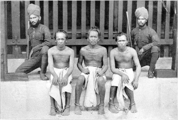 There were reminders of historic times. One of the Public Works officers was a veteran who had[Pg 23] fought at Chillianwallah. Another resident had learnt his work under Brunel. Less pleasing relics of the past were a few old men branded on the forehead and sent into transportation from India. Some, but not all, were mutineers. They were not in confinement, but eked out a wretched existence on two or three pence a day.