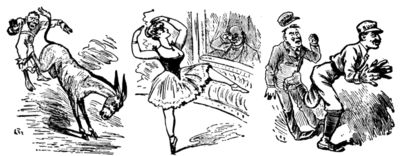 Old Farmer (climbing the fence and approaching the buggy)—Beg pardon, I'm a little hard o' hearin'. What is it?