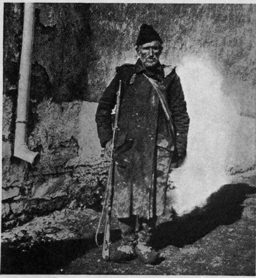 The Devil-Major, as we called him, then made us follow him upstairs, to the top floor, to a room in which we were to spend the night—the last night? He ordered me to be separated from the others, in another room, but I was responsible for the position of my companions, and without my influence—as a woman—death for them was certain, and I resisted the separation successfully. The Major then drove us into a room that was bare, except for verminous straw upon the floor. He refused to give us food, though we had not eaten since the day before, but water in tin cans was brought to us to drink, and we were told to lie down on the dirty straw.