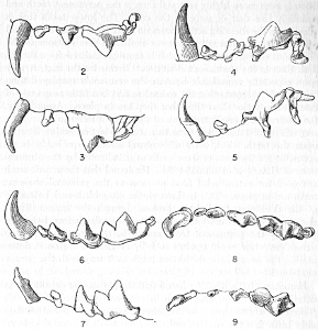 When, in 1930 (pp. 146-147), I wrote about the taxonomic position of three American genera of fossils (known only from lower jaws), each of which had been previously referred to the genus Mustela, I said that they pertained "to that section of the weasel family (Mustelidae) which comprises the polecats, true weasels, ferrets, minks and martens. The fossil specimens . . . are smaller than any other later Tertiary members of the group yet described, and are more primitive than any of the above mentioned Recent relatives. Of the three extinct genera . . . Miomustela [Lower Pliocene or Upper Miocene of the Lower Madison Valley, Montana] is the most primitive and Martinogale [Pliocene, 18 mi. SE Goodland, Sherman County, Kansas] is the most advanced. This view rests largely on the character of M=1 which in Miomustela has a deeply basined, short, narrow talonid with a thick, high metaconid situated partly posterior to the protoconid. In Martinogale the talonid is incipiently trenchant, long, broad, and it has a lesser developed metaconid which is situated more anterior [ly]. Pliogale [Lower Pliocene, Humboldt County, Nevada] is intermediate in this respect.