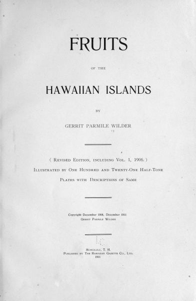 I trust that this work will prove of some interest, as I believe that it contains a fairly comprehensive list of both the indigenous and naturalized Fruits of the Hawaiian Islands.