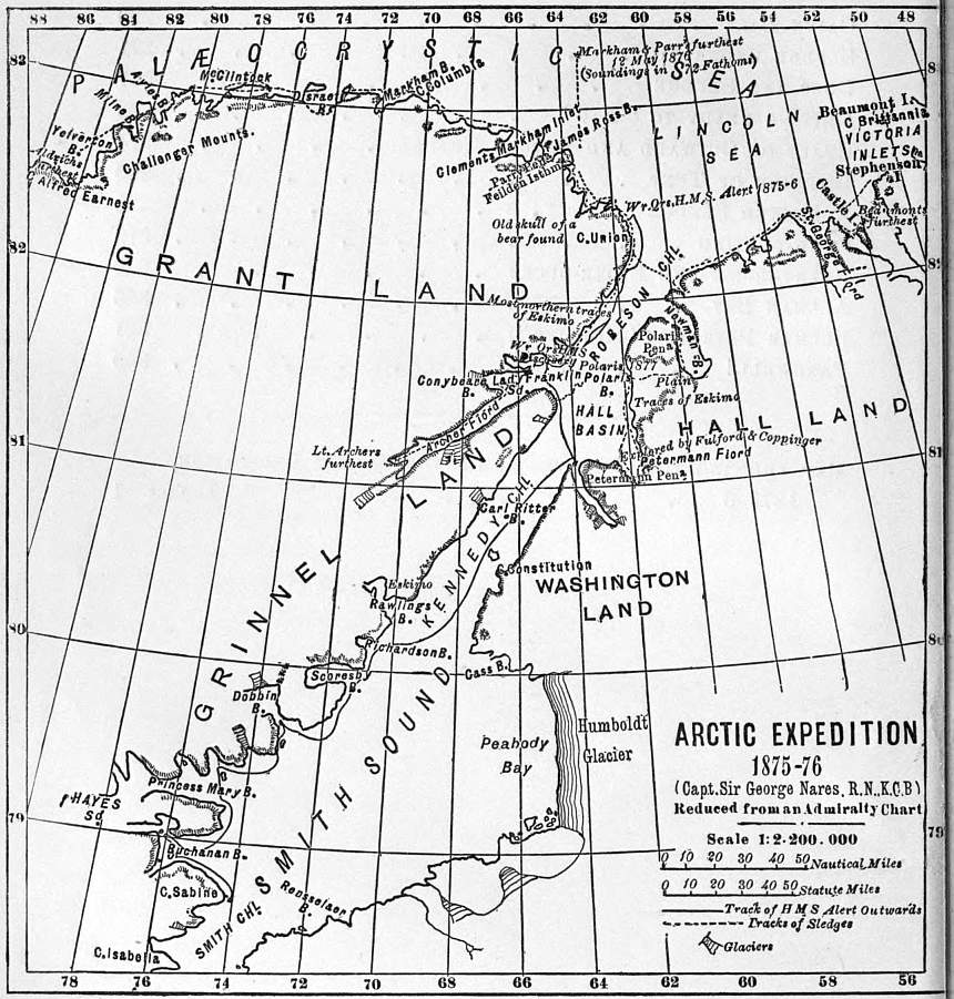 The History of the Arctic Expedition of 1875-76, and the record of its results, will be found in the work of Sir George Nares. My object in publishing the present volume is to furnish a popular narrative of memorable events as they presented themselves to an individual member of the Expedition, and especially of the work of sledge travelling over the frozen polar ocean. It was written a few months after our return to England, but its appearance has been purposely deferred until the publication of the work by Sir George Nares.