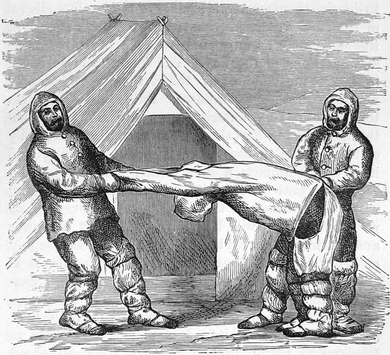 Scurvy, 237; premonitory symptoms, 284, 285; dread of, 299; increasing symptoms, 303, 304, 305, 313; decrease of appetite, 314; extreme weakness, 317; outbreak on board the “Alert,” 321; true causes of the outbreak, 329, 330; cure of patients, 333, 339, 345; patients convalescent, 365; outbreak in sledge crews of “Discovery,” 346.
