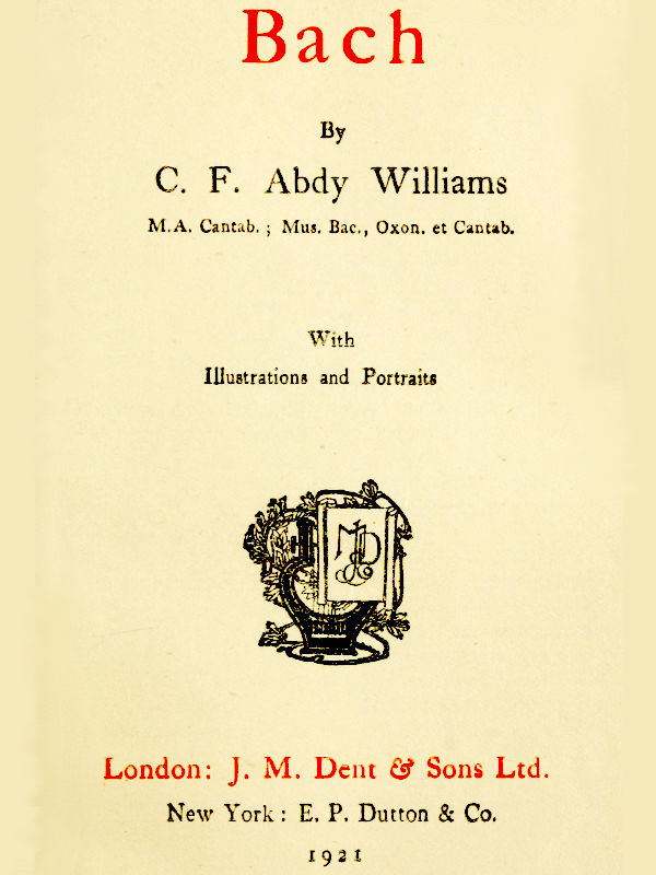 The two recent important accounts of Bach’s life are those of C. H. Bitter, 1865, 2 vols.; second edition 1880, 4 vols.; and Philipp Spitta, 2 vols, a translation of which by Mrs Clara Bell and Mr Fuller-Maitland was published by Messrs Novello in 1884. With regard to the last, I have to thank Messrs Novello for kindly allowing me the use of the book at a time when it was out of print. I understand that a second edition has since been published.
