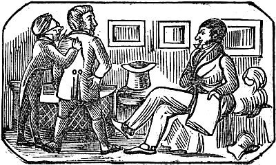 ——“Well, governor, how does the cock fight?” “Oh, pretty well, sir; but it ain’t a cock; its a genuine thing—the days for cocks, sir, is gone bye—cheap newspapers ’as done ’em up.” “Yes; we see this is a Brighton Newspaper of to-day.” “Oh, yes, that’s right enough—but its all true.” “Yes; we are aware of that and knew the unfortunate man and his family; but you are vending them after the old manner.” “That’s all right enough, sir,—you see I can sell ’em better in that form than as a newspaper—its more natural like for me: I’ve sold between ten and twelve dozen of ’em to-day.” “Yes; but how about to-morrow?” “Oh, then it will be all bottled up—and I must look for a new game, I’m on my way to London, but a hearing of this suicide job, I thought I’d work ’em just to keep my hand in and make a bob or two.” To our question of “Have you got any real old ‘cocks’ by you?” He replied, “No, not a bit of a one; I’ve worked ’em for a good many years, but it ’aint much of a go now. Oh, yes, I know’d ‘old Jemmy Catnach’ fast enough—bought many hundreds, if not thousands of quires of him. Not old enough? Oh, ’aint I though; why I’m turned fifty, and I’ve been a ‘street-paper’ seller all my life. I knows Muster Fortey very well; him as is got the business now in the Dials—he knows his way about, let him alone for that; and he’s a rare good business man let me tell you, and always been good and fair to me; that I will say of him.”