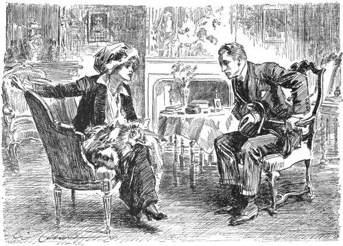 The reception room, with its early Victorian furniture, appeared to be empty, at first glance; but the next instant he saw somebody in the curtained embrasure of a window—a shadowy figure which did not seem inclined to leave obscurity—the figure of a woman in veil and furs, her face half hidden in her muff.