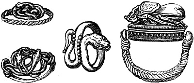 | Etruscan rings with serpents and beetle | 19 |