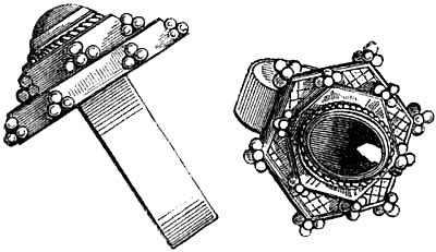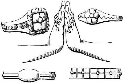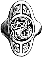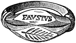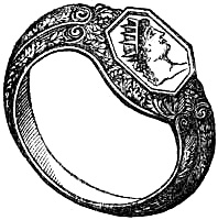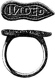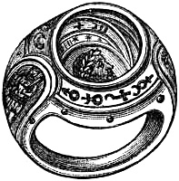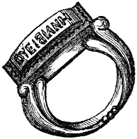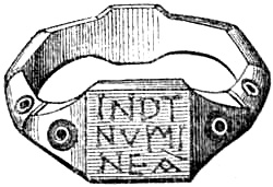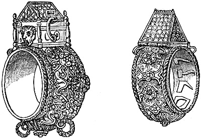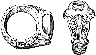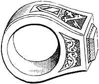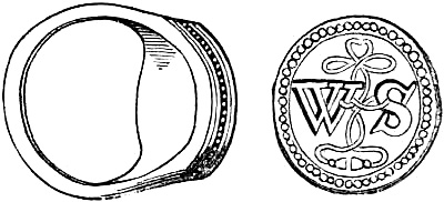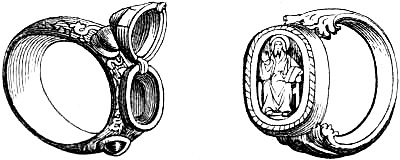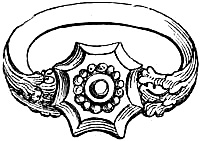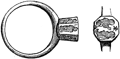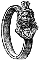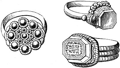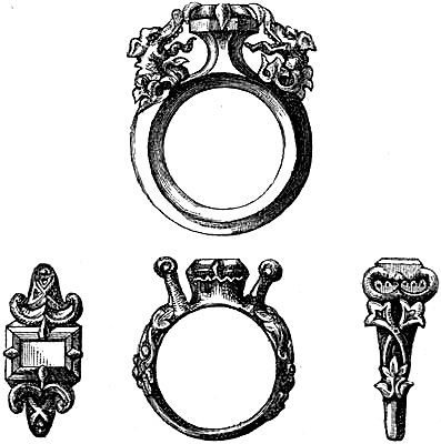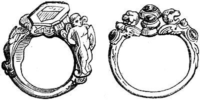 [58] In the Waterton Collection, at the South Kensington Museum, a forefinger, from a bronze statue of late Roman work, wears a large ring upon the second joint. In Germany it is still customary to wear the ring in this fashion, a custom borrowed from their Roman subjugators.