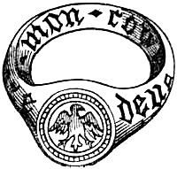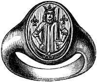 [49] Horace Walpole, in one of his letters, alludes to the ‘Fisherman’s Ring’ in his usual lively manner: ‘Mr. Chute has received a present of a diamond mourning-ring from a cousin; he calls it l’annello del Piscatore. Mr. Chute, who is unmarried, meant that his cousin was fishing for his estate.’