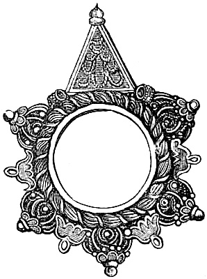 [38] The shrine of the Magi, in Cologne Cathedral, dates from the twelfth century. The central subject is the Virgin with the infant Jesus; on the left, the Adoration of the Three Kings, accompanied by the Emperor Otho IV. On the right, the Baptism of Christ by John the Baptist, in presence of an angel. All these figures are of pure gold, and in full relief. The architectural decorations are covered with enamels and precious stones. Above these figures is a cover of silver-gilt, on removing which the skulls of the Three Kings are seen, with their names, Gaspar, Melchior, and Balthazar, traced in rubies. The crowns of copper gilt replace those of massive gold, which disappeared during the revolutionary storms. They weighed each six pounds, and were enriched with fine pearls and an aigrette of diamonds. Above the relics is the figure of Christ, as the Judge of men, between two angels, who hold the instruments of the Passion. This reliquary is 5½ feet long, by three wide, 5 feet high. It was begun in 1170, and made by order of Archbishop Philip von Heinsberg. In the Rosicrucian theory, Caspar, or Gaspar, is the ‘White One;’ Melchior is the ‘King of Light;’ Beltasar, the ‘Lord of Treasures.’ Balthasar, or Balthazar, is the septuagint spelling of Belshazzar. Talismanic rings and other objects were manufactured largely for sale to the pilgrims at the shrine of the ‘Three Kings.’