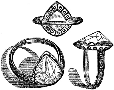 [61] In the reign of George the Fourth, a limited number of plain gold rings were made, having a well-executed miniature medallion of that King set beneath a large diamond. One of these was in the possession of the late Lady Fellows.