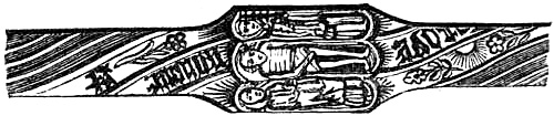 Grimm states that the Anglo-Saxon Runic alphabet was derived from the Scandinavian at a period when it had only sixteen letters, the complementary letters of the two alphabets having been formed on principles that offer not the slightest analogy. While on the subject of Runic calendars I may mention (although unconnected with rings) a singular Runic almanack which was exhibited at the Winchester meeting of the Archæological Institute in 1845. It is in the form of a walking-stick, called in the north of Europe a ‘rim-stok,’ or ‘primstaf.’ The symbols and figures which ornament this calendar relate to the saints’ days and the successive occupations of the seasons. The staff is of a fashion rarely to be found in the north, and appears to be the same which was procured at Trondheim, in Norway, by Mr. Wolff, formerly Norwegian consul at London, who published an account of it.