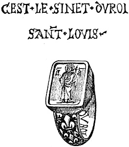 [36] A curious legend is connected with this famous jewel. The French monarch had visited the shrine of the saint to discharge a vow which he had made in battle, and he knelt before it with the stone set in a ring on his finger. The officiating prelate entreated the King to bestow the jewel on the shrine, but as the jewel ensured good luck, Louis hesitated, but offered, in compensation, one hundred thousand florins. The prelate was satisfied, but the saint evidently was not, for the stone leaped from the ring and fastened itself to the shrine. So bright was the stone that it was impossible to look at it distinctly, and at night it burned like fire.