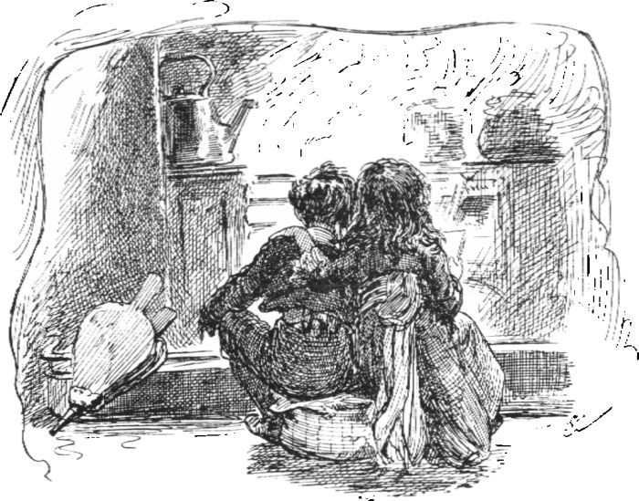 “My sister Patty was six years old. We loved each other dearly. The picture-book was almost as much hers as mine. We sat so long together on one big footstool by the fire, with our arms round each other, and the book resting on our knees, that Kitty called down blessings on my godmother’s head for having sent a volume that kept us both so long out of mischief.