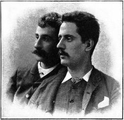 But in whatever way we view an opera, mere orchestral fulness will not serve to land the work very high up in the esteem of music lovers. Nor will the purely beautiful in music—melody worked out with transparent clearness of form—save a poor, unconvincing or uninteresting dramatic fabric from passing6 into the great storehouse of the unacted. Puccini's music is dramatic, and by far the greater part of it, by a sort of quick natural instinct, is purely of the theatre. His first and most direct appeal is by the charm and vitality of the vocal expression, while his whole plan is one of movement. From the first—if we except for the moment his Le Villi, which was first called a ballet-opera—he called his operas Dramma per lyrica—lyric dramas, a term first established, and moulded into a definite art-form, by Wagner. With his first opera, Puccini started something of a new form in the short opera; and two remarkable works of the kind in Cavalleria Rusticana by Mascagni and I Pagliacci by Leoncavallo, which came very soon after, clearly indicate that he had founded a school as it were; and so from Italy to-day, as in times past, this particular fashion spread to other countries. Puccini, still exhibiting, with a strong and in many ways typical national feeling, spontaneous vocal melody as his leading characteristic, did not limit himself to the perfection of the short opera. His subsequent works were of larger calibre. He left the fanciful and imaginative and the old world legends, and turned to everyday life for his subjects. In general form—for one must revert to this not particularly lucid description when dealing with opera—Puccini must be placed among the shining lights who have chosen to deal with what may be called light opera. Opéra comique, as translated by our term "comic opera," means something so entirely different, that although "light opera" is but a poor expression, it is one that may perhaps be most readily "understanded of the people."