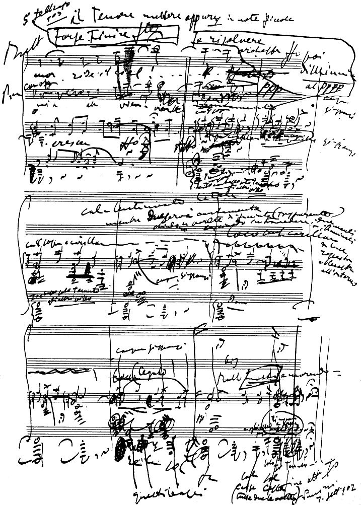 PUCCINI'S MANUSCRIPT. FIRST SKETCH FOR THE END OF THE FIRST ACT OF "MADAMA BUTTERFLY" 102