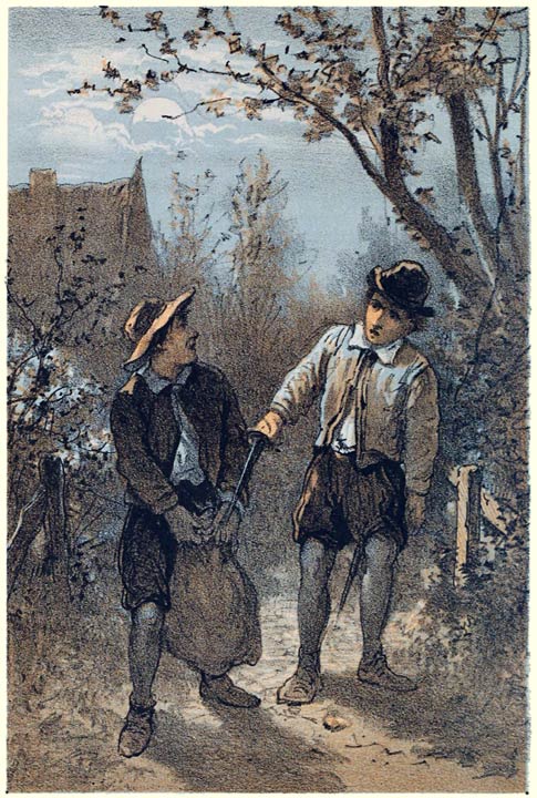 „Hier is het al, goede luiden,” antwoordde de vroolijke, oude man en las van een strookje papier, dat hij onder het eten bekrabbeld had, het volgende voor: