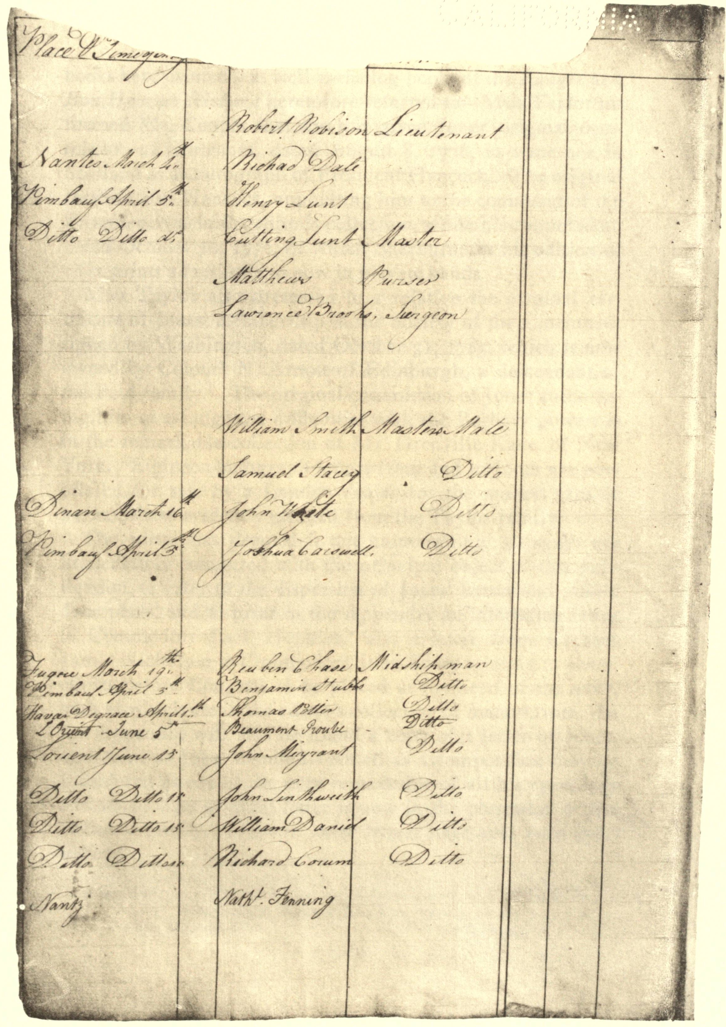 List of Officers and Men of the Continental Ship, Bon Homme Richard, July the 26th, 1779 3
