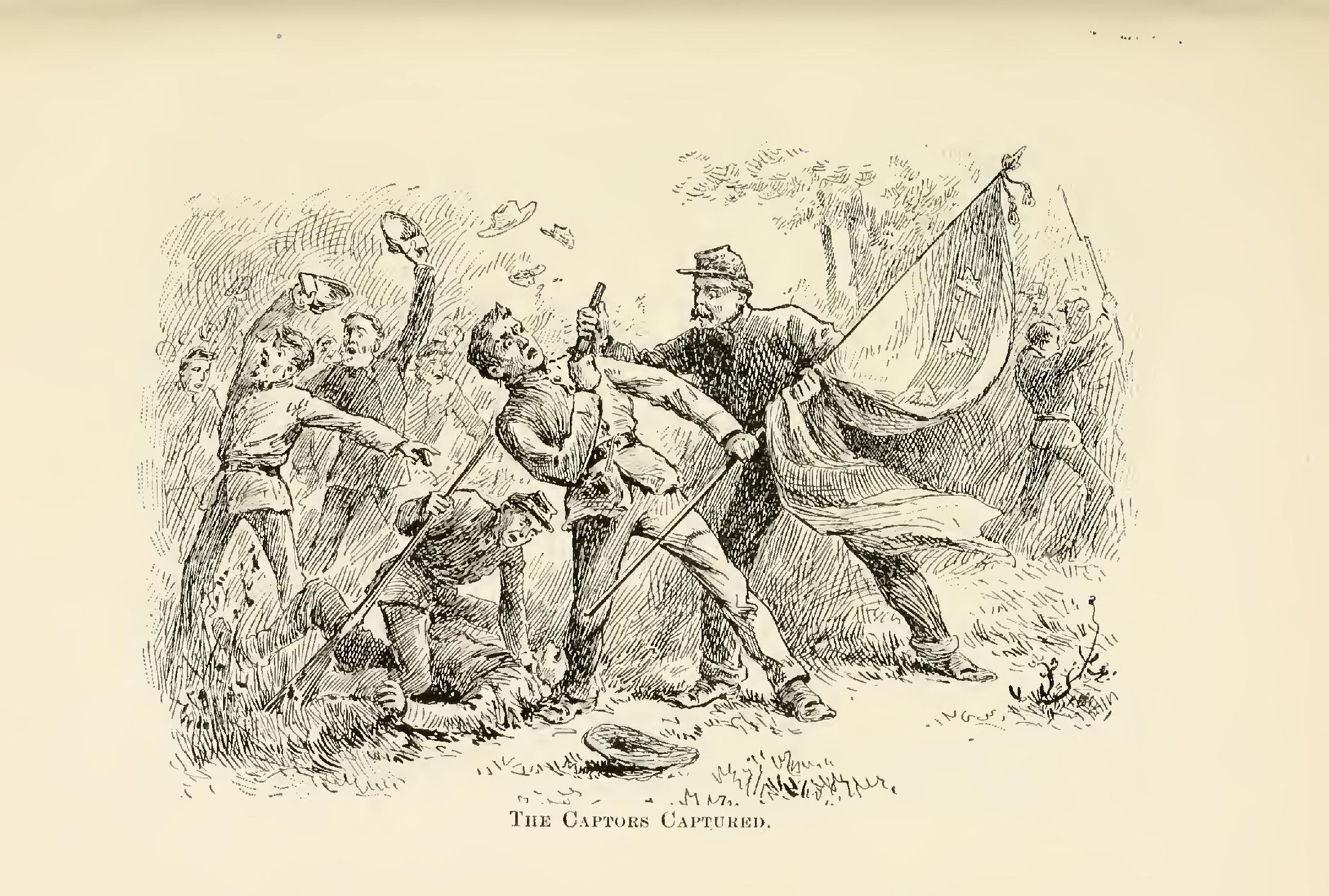 “There's only one more feller there,” said the prisoner, who surrendered by throwing his hands in the air and dropping his shotgun on the ground. The summons was renewed, and down came the “one more feller” and surrendered after the same fashion; and this was the way their prisoners were taken.