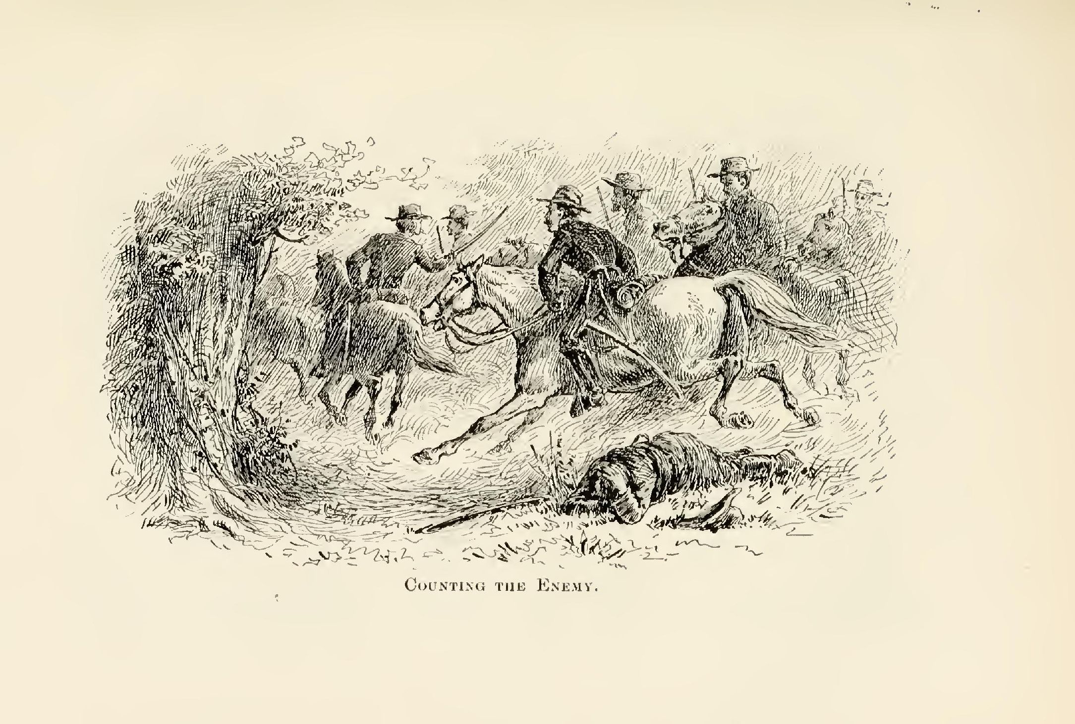 After the fighting was over the youths dismounted to look over the ground and pick up anything that might be of value or would indicate to what company or regiment, if any, the men they had been engaged with belonged. They had done this on several occasions to advantage, and in the latter part of their campaigning it was a rule to which they adhered whenever circumstances permitted.
