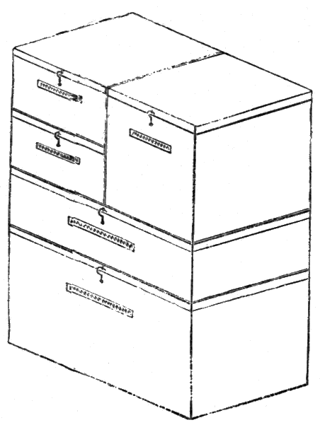 (which can always be obtained at a cheap rate from the London dealers), or else set to work and copy them yourself in a good plain hand, so that there is no mistaking what you write. As far as possible, in each drawer or drawers representing a geological formation, arrange your specimens in natural-history order—the lowest organisms first, gradually ascending to the higher. By doing so, you present geological and zoological relationship, so that they can be taken in at a glance. You further make yourself acquainted with the relations of the fossils in a way you never would have done, had you been content to huddle them together in any fashion, so that you had them all together. Glass-topped boxes, again, are very useful in the cabinet, especially for delicate or fragile fossils, as people are so ready to take them in their hands when they are shown, little thinking how soon a cherished rarity may be [14] destroyed, never to be replaced. Pasteboard trays, made of stiff green paper, squared by the student according to size, can also be so arranged as that the drawer may be entirely filled, and so the danger of shaking the contents about may be removed. Each tray of fossils ought to have the above-mentioned label fastened down in such a way as that it cannot by accident get changed by removal.