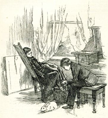 "Very vells," said the little man, climbing rather hastily back on the bench, for he thought he heard his wife coming—"very vells; put pring de quarter to-night, else I get it from somepodies."