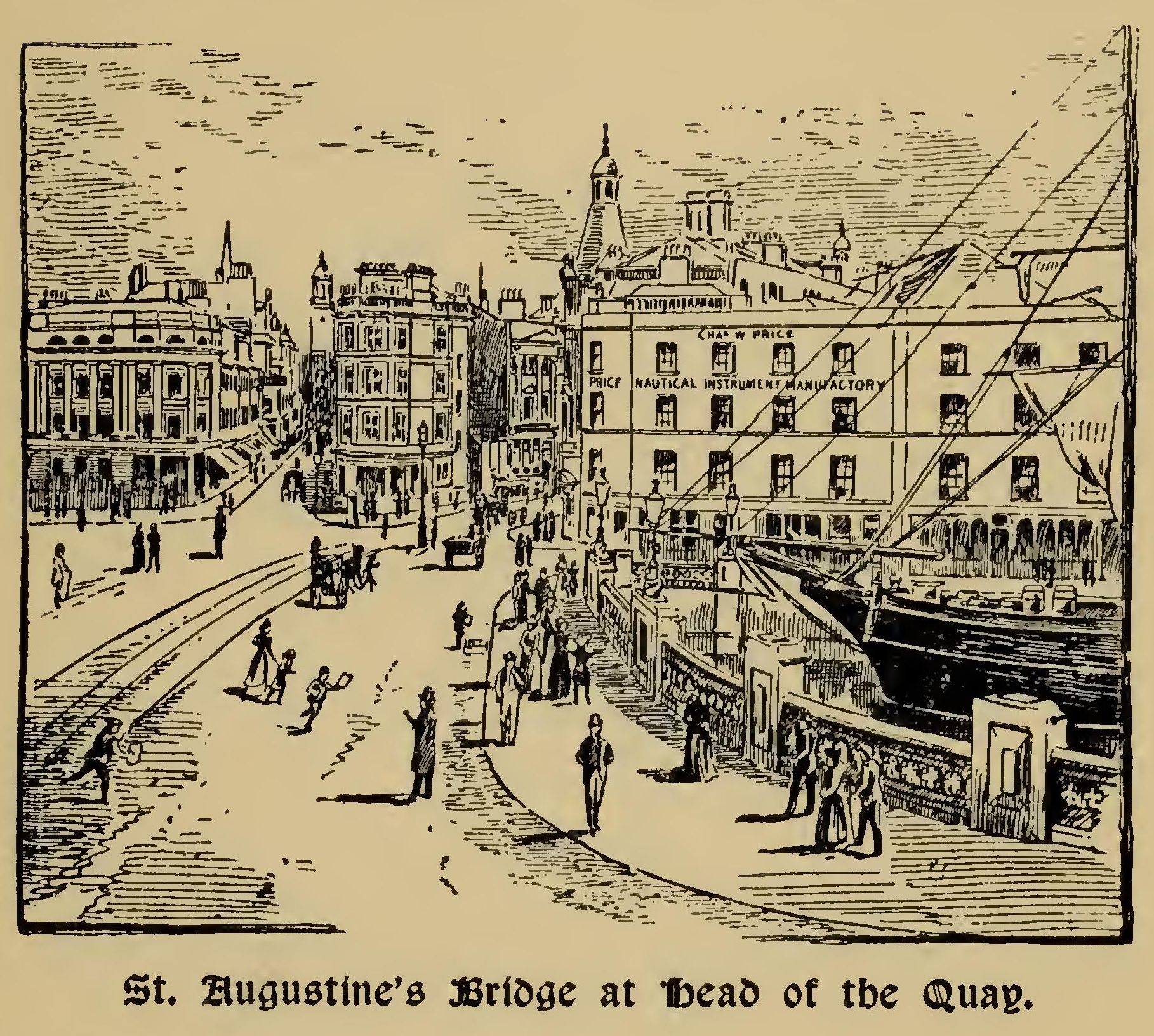 No finer view of Bristol and its environs can be obtained anywhere than from the Hill. On the right rise the woods and mansions of Clifton, and its Parish Church, "severely simple!" In the valley between is Jacobs Wells, the old Jewish quarter. The City schools were built on the ancient burial ground, which gave rise to the witty if gruesome remark that, "whatever the boys might lack they were always sure of a good Hebrew foundation." Thanks to Queen Elizabeth, the boys' mothers have been always sure of a good "drying ground!" Her Majesty having secured to them for all time a portion of this side of the Hill for laundry purposes; in recognition, it is said, of the faultless style in which their progenitors "got up" the immense ruffles worn by herself when visiting the City. Immediately on the left is St. Michael's Hill, the site of another large fort; and Tyndall's Park and mansion, still possessed by a branch of the family whence sprang William Tyndall, the translator of the Bible, the only perfect copy of whose first edition is still preserved in the Baptist College hard by. Beyond, and spreading for miles along the valley, bounded on its opposite side by Bedminster Downs and Dundry Hill, lies the City with its churches and schools, its ancient buildings (now, alas! rapidly disappearing), its modern warehouses and factories, its venerable cathedral and historic "green," encircled by avenues of limes. And, intersecting its southern side, the floating harbour, formed by the Avon and Frome, and bearing on its capacious bosom the merchandise of many lands, carried in craft of all sizes, from the tiny coasting lugger to the huge, perfectly equipped Atlantic steamer.