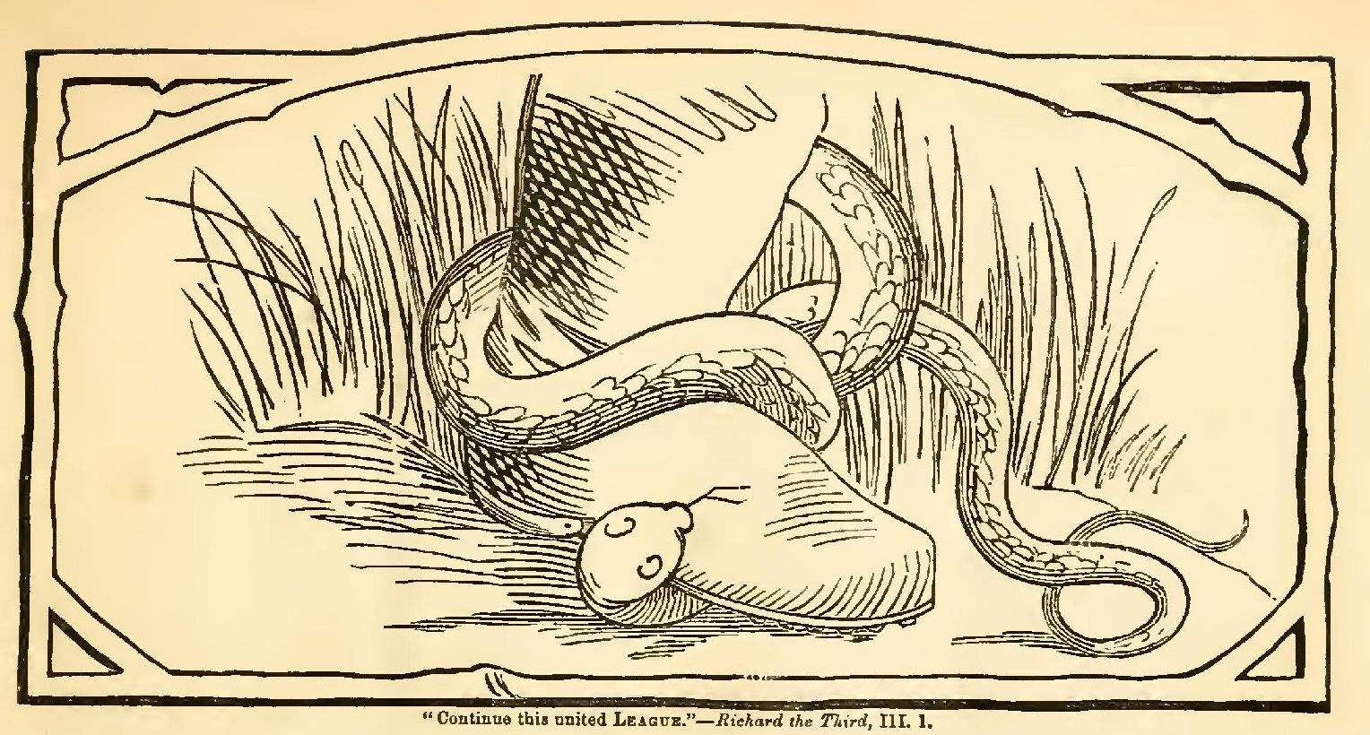 "Exit shall be strangling a snake."—Love's Labor's Lost, V. 1.