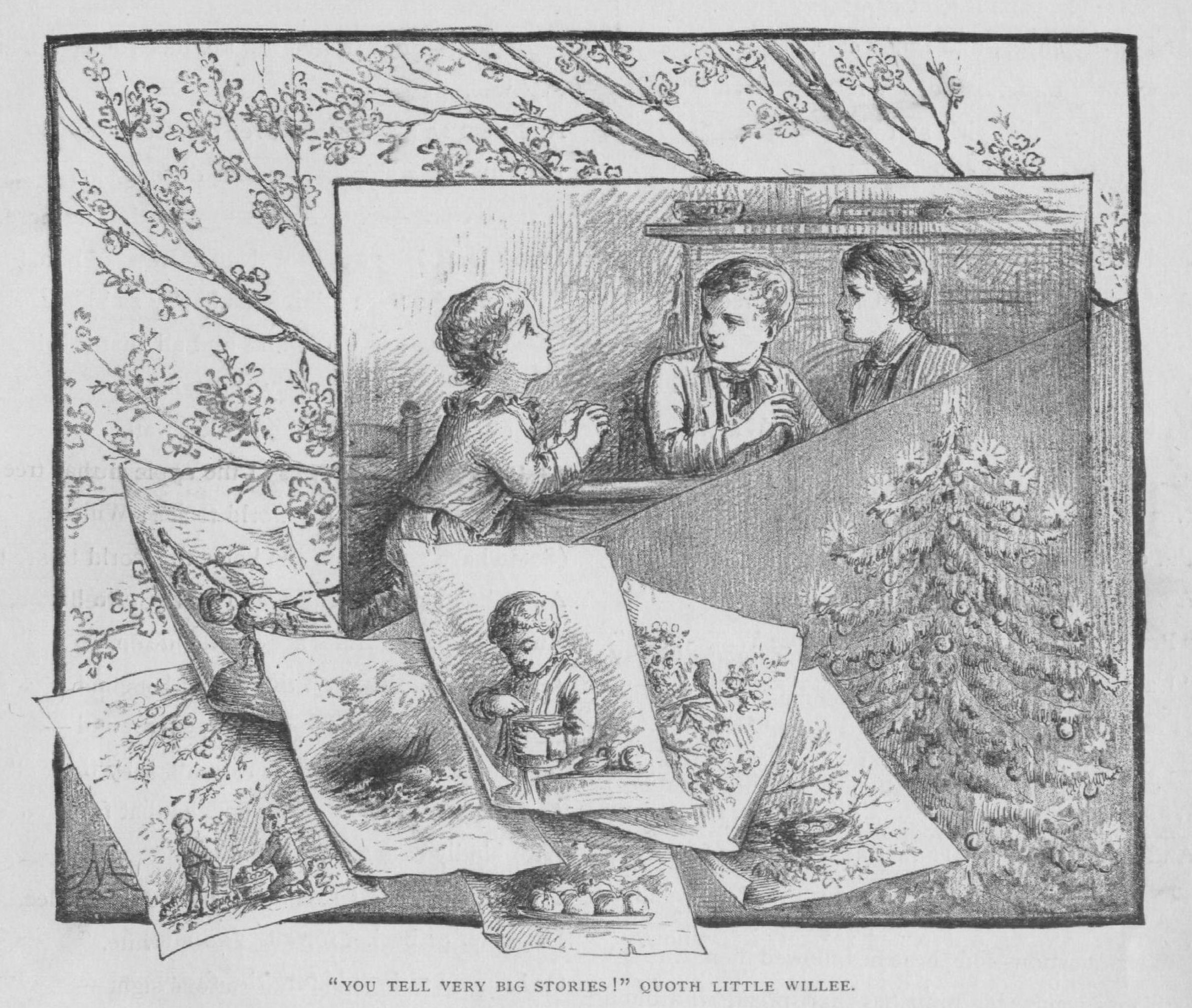 A bough of evergreen, with wax-lights gleaming,