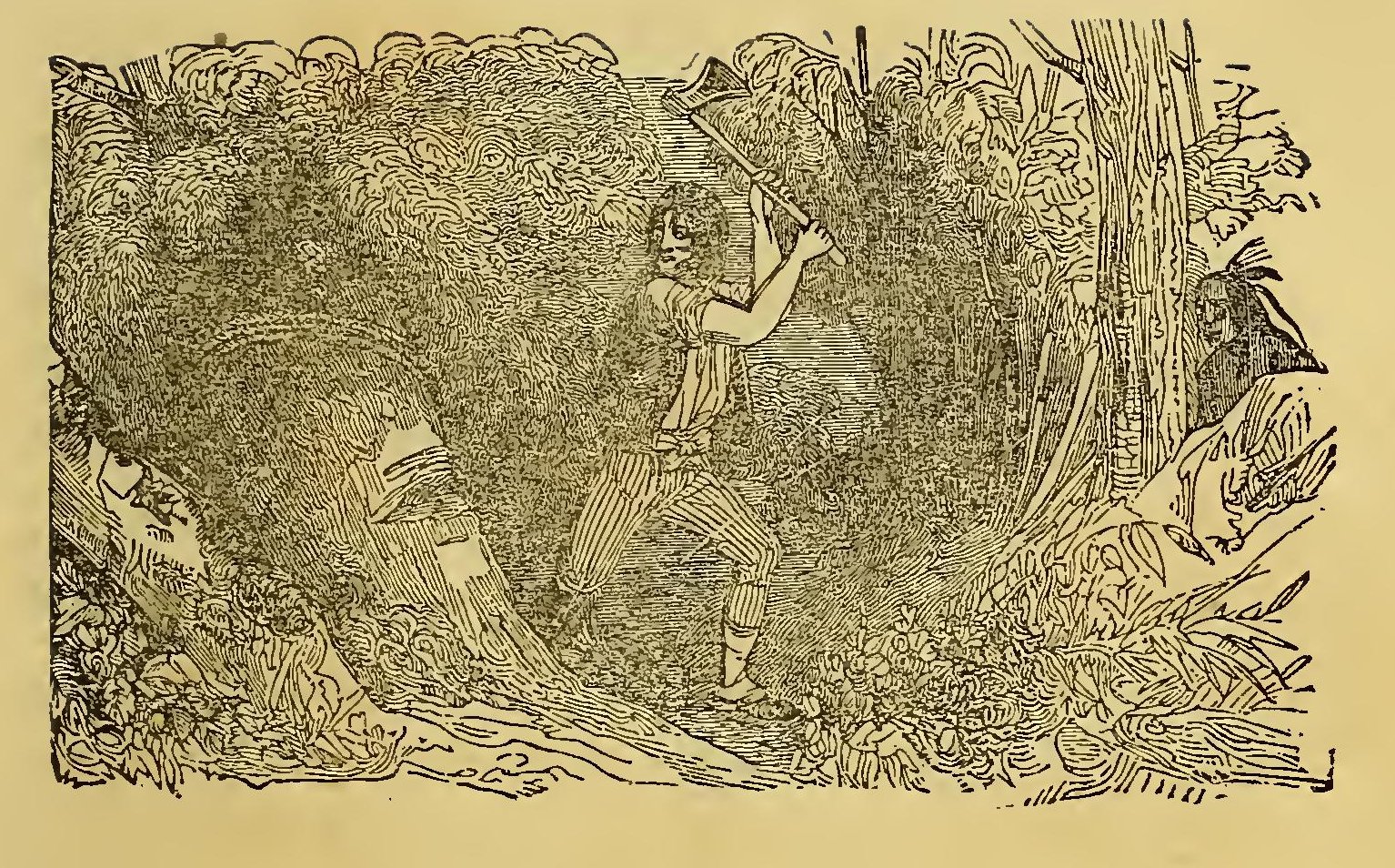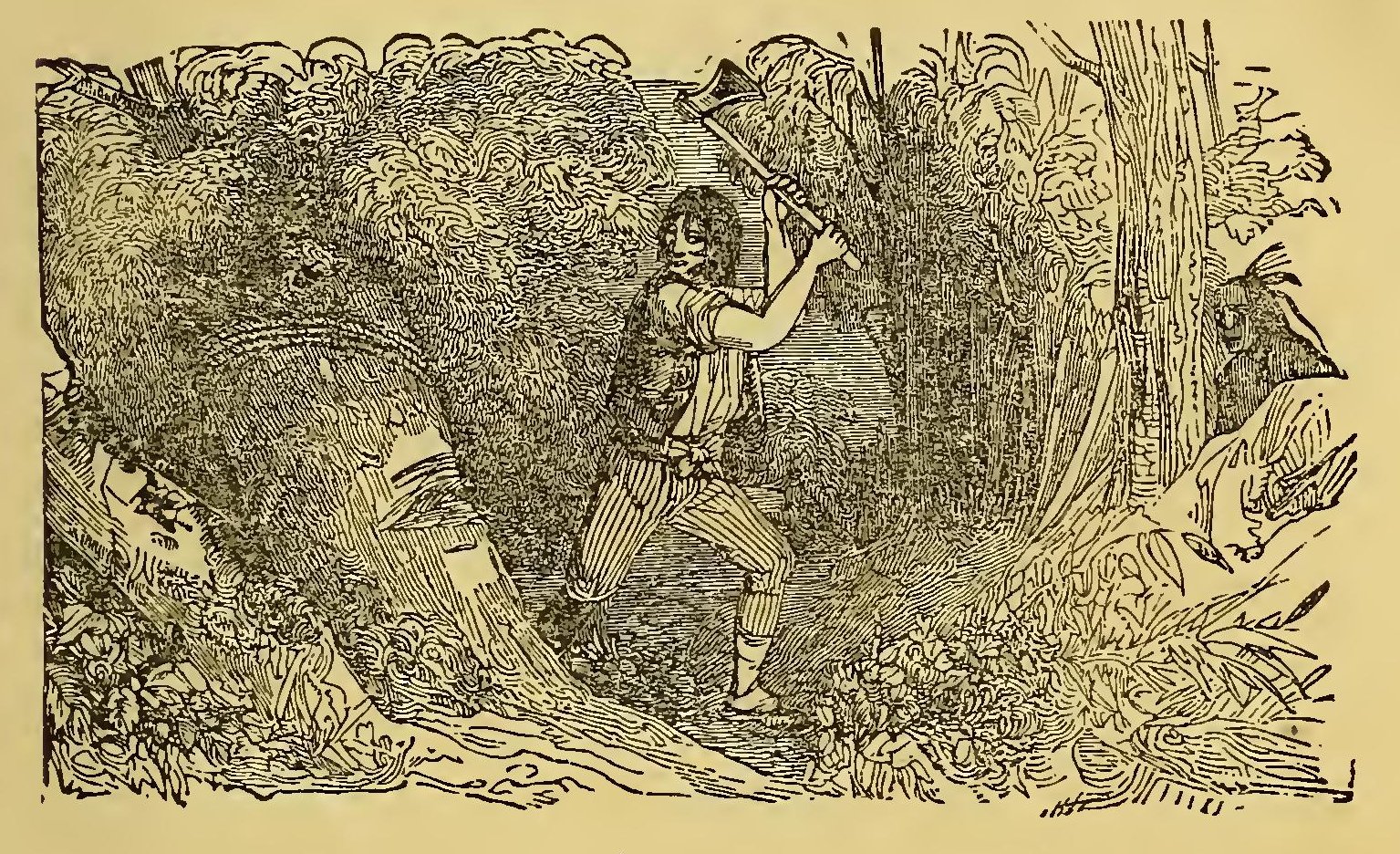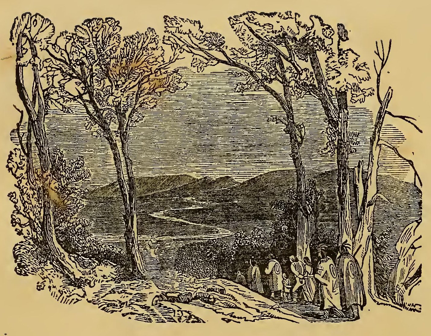 In the day time they shot and cooked as much game as they required, and at night they kindled a fire by which they slept. After a fatiguing journey through the forest for many days, they came one morning to the top of a hill from which there was the prospect of a cultivated country, interspersed with several snug farm-houses.
