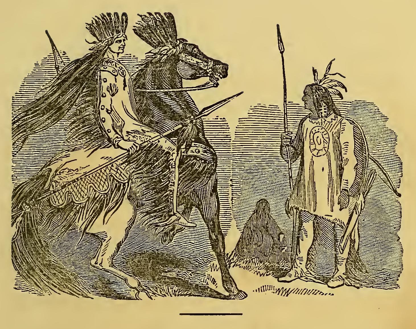 “Oh! how fortunate he is still to have a son!” cried the Indian; and then, after a moment’s silence, he added, “Knowest thou that I have been a father; but I am no longer so! I saw my son fall in battle; he fought bravely by my side; my son fell covered with wounds, and he died like a man! but I revenged his death; yes, I revenged his death!”