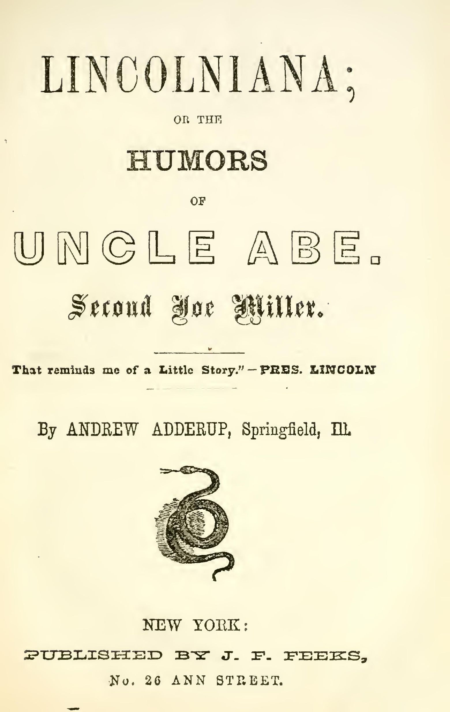 LINCOLNIANA; OR, THE HUMORS OF UNCLE ABE,