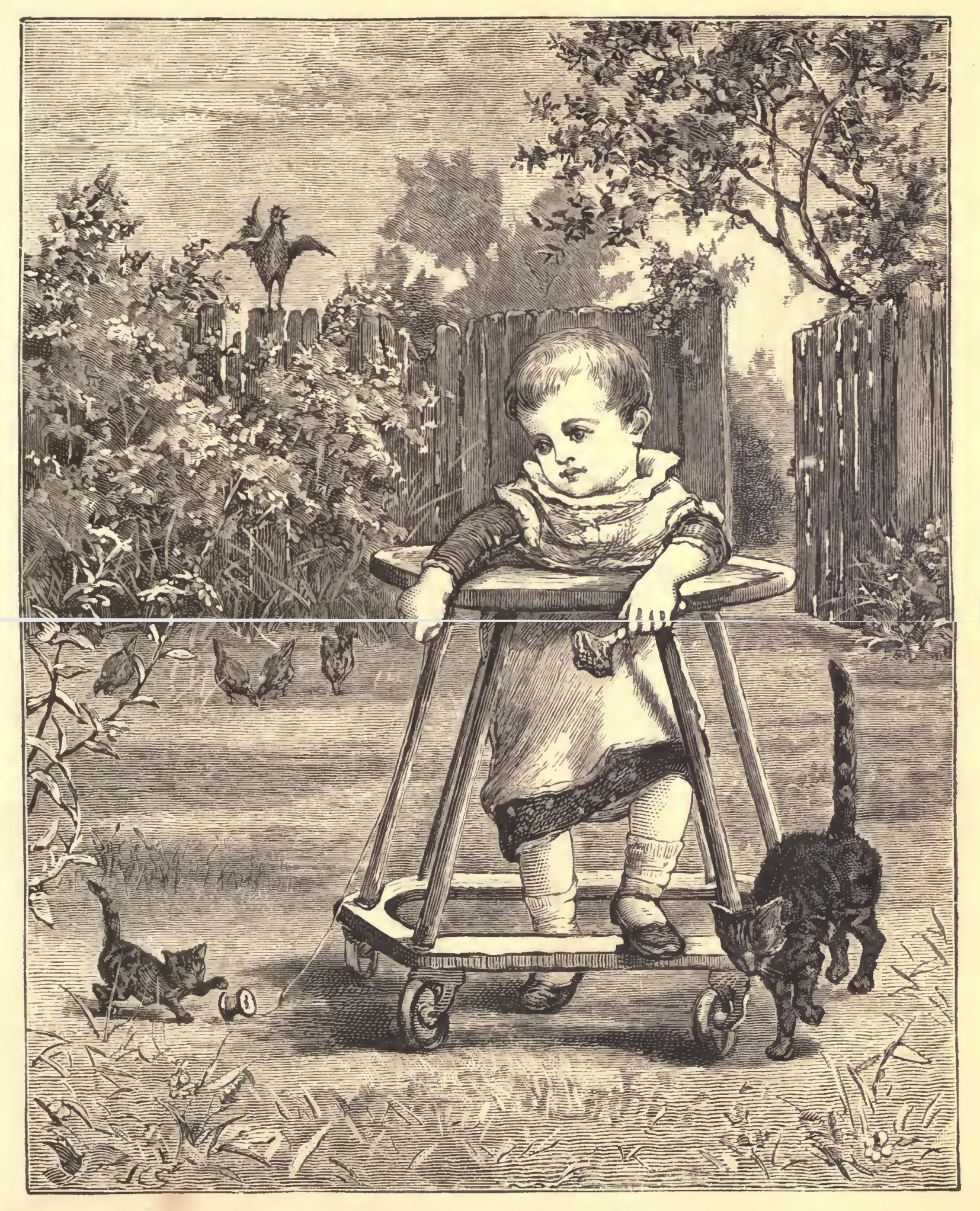 When he was quite small, Toots used to spend hours in the garden safely fastened into the standing stool which his grandpa had when a little boy. The little fellow's face was so bright, and his large eyes so full of innocent fun, that no one could be angry with Toots even when he did very strange and unexpected things.