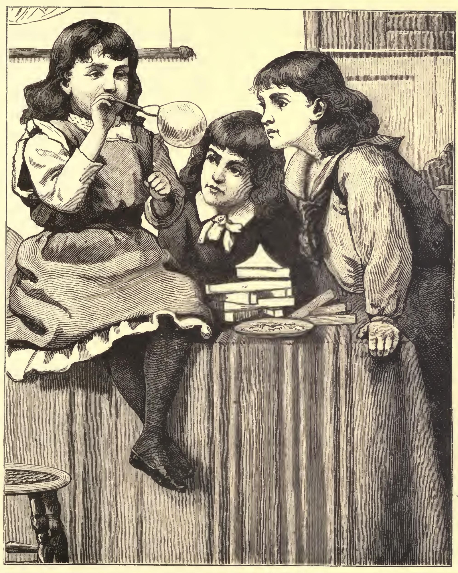 After dinner he had a long story to tell about the lungs of plants and the edges of leaves, which were like little saws, and a pretty pitcher-plant he had seen. When his story was complete he added, "All my children shall go to a Kindergarten, for it is the nicest place in the world 'cept mamma's room."