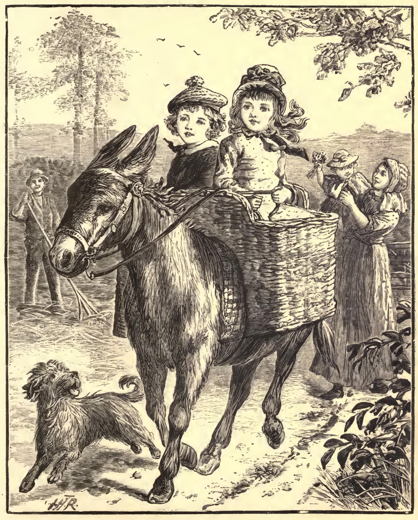 The children about the fort used to ride on his back in a sort of double saddle made of willow. One day the soldiers took him inside of a small gate in order to remove some ashes from a cellar. The cart was backed in and Daddy stood with his head just outside of the gate. He looked like a droll picture in a frame. There he stood winking his eyes and shaking his long ears. When the soldiers had the ashes all in the wagon they told Daddy to go on, but he would not move; then they coaxed him but he did not stir. His driver pelted and pulled, but Daddy winked and never moved a step.