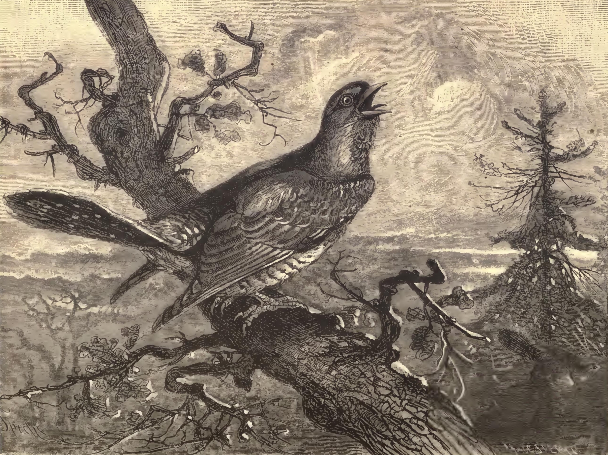 "We drew the tent curtains close, made little ditches outside to carry off the water, and read, played games, or told stories. One day a party of gentlemen came to our camp. They were out hunting, and one of them had in his game bag a pretty cuckoo he had just killed. Poor Toots felt terribly when he saw it. Only the day before he had heard its pretty note, 'Cuckoo! cuckoo!' and we had told him that its name was given it because it made that peculiar song."